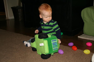 and lately tanner has been practicing for an easter egg hunt-he's going to be ready for the easter bunny! he loves his basket-lance picked out his tractor basket.